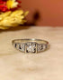 Son plateau travaillé main est serti d’un diamant central lumineux de 0.07 carat et est entouré de 6 autres diamants de 0.06 carat.