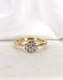 "Élaïa" est une sublime bague marguerite vintage, finement façonnée en or jaune 18 carats. Elle est sertie d'un diamant central de 0.15 carat, épaulé d'un lumineux halo de 8 diamants totalisant 0.28 carat. Elle attire tous les regards grâce à son éclat irrésistible et son style résolument élégant.