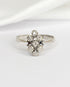"Valeria" est une magnifique marquise vintage des années 1970 finement façonnée par un joaillier français en or gris 18 carats. Tout son charme réside dans son élégant motif floral finement ajouré, orné de 7 diamants scintillants, totalisant 0.05 carat.