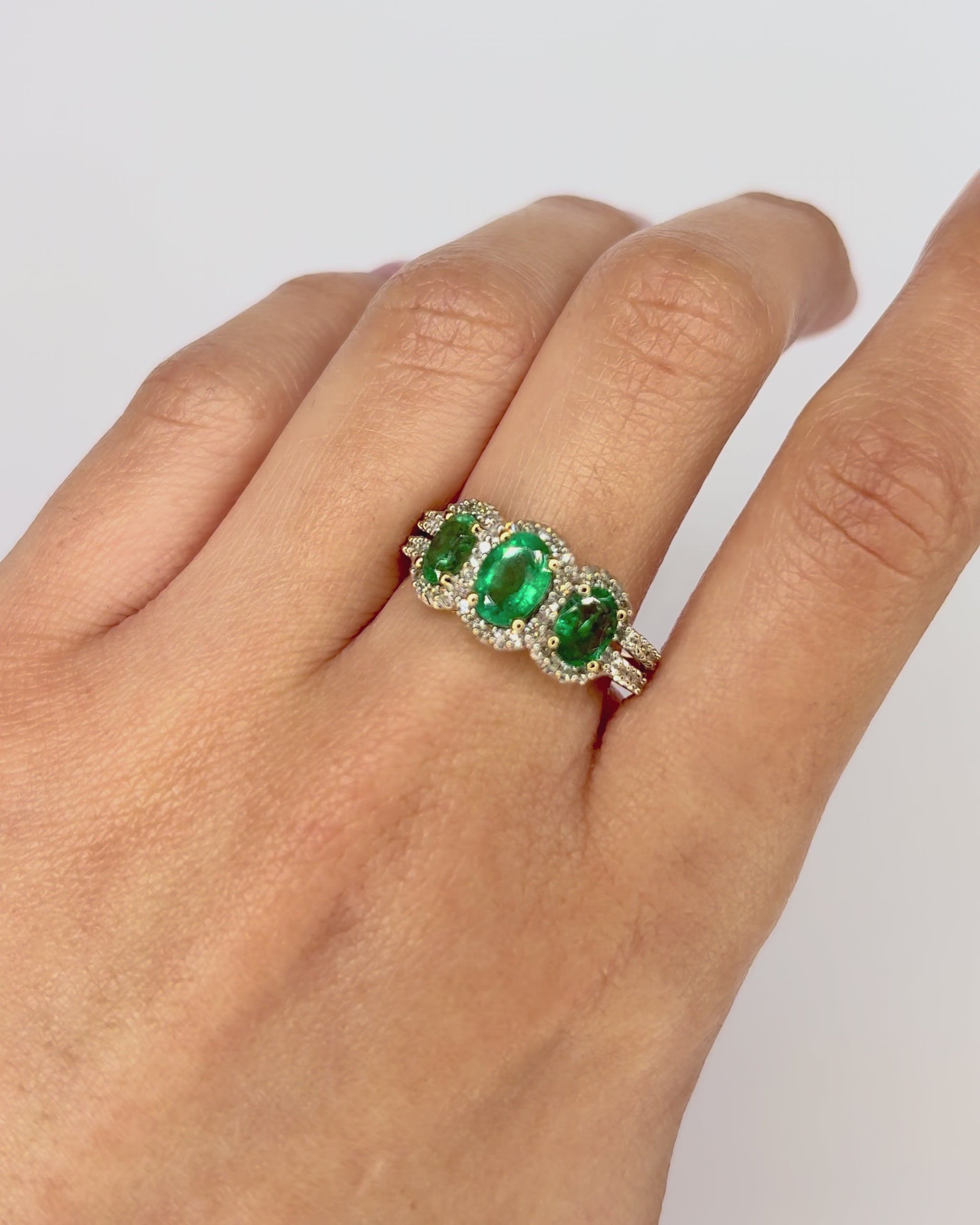 Bague Trilogie Émeraudes 1.80 carat & Diamants 0.52 carat "Annaëlle"