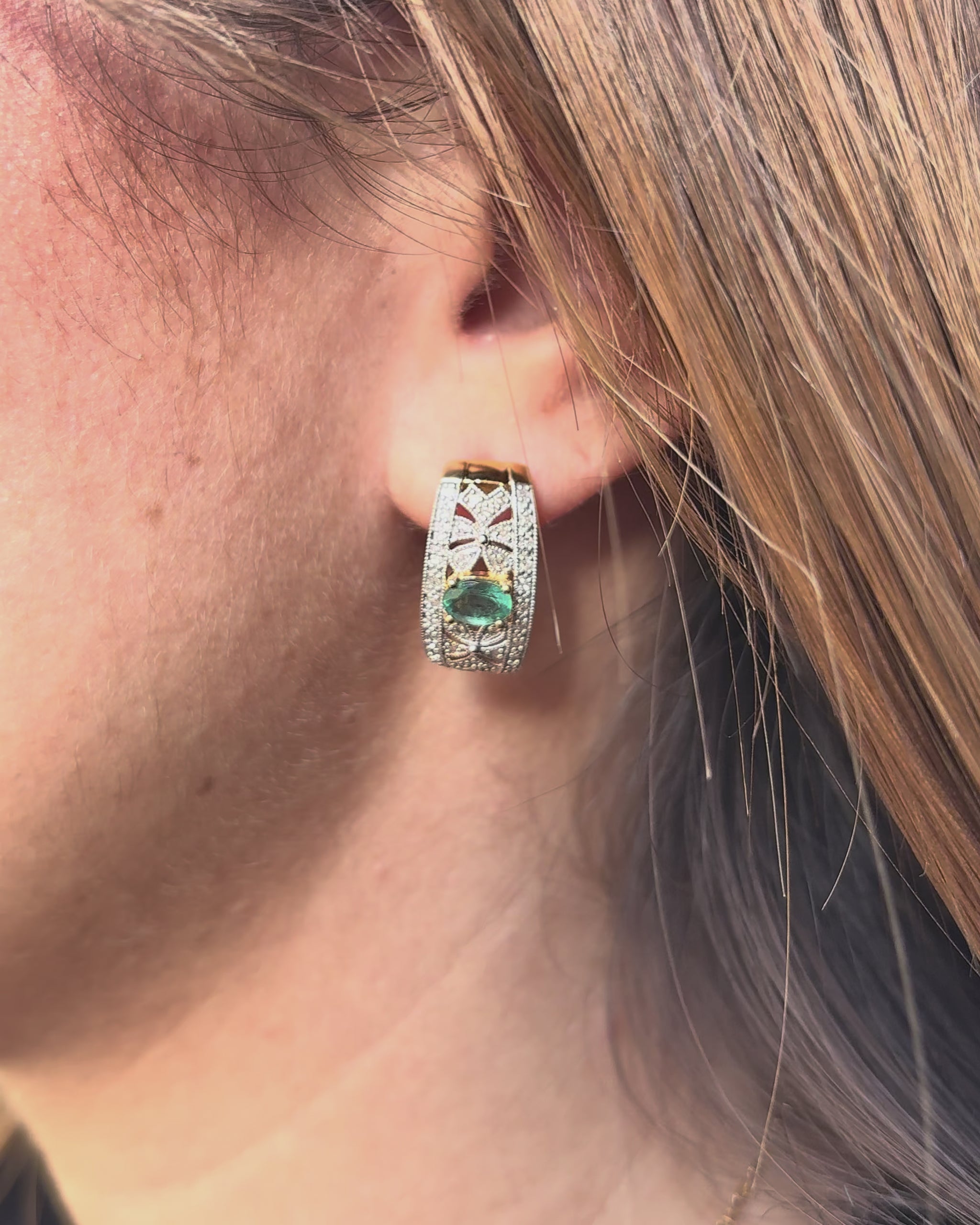 Boucles D'oreilles Émeraudes 1 carat & 68 Diamants "Veronica"