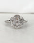 "Jeanne" est une sublime bague marguerite vintage, façonnée en or gris 18 carats. Au cœur d'un délicat design floral est serti un lumineux diamant de 0.08 carat, épaulé de 24 diamants totalisant 0.36 carat. Ils confèrent à cette bague ancienne un éclat précieux et une élégance intemporelle.