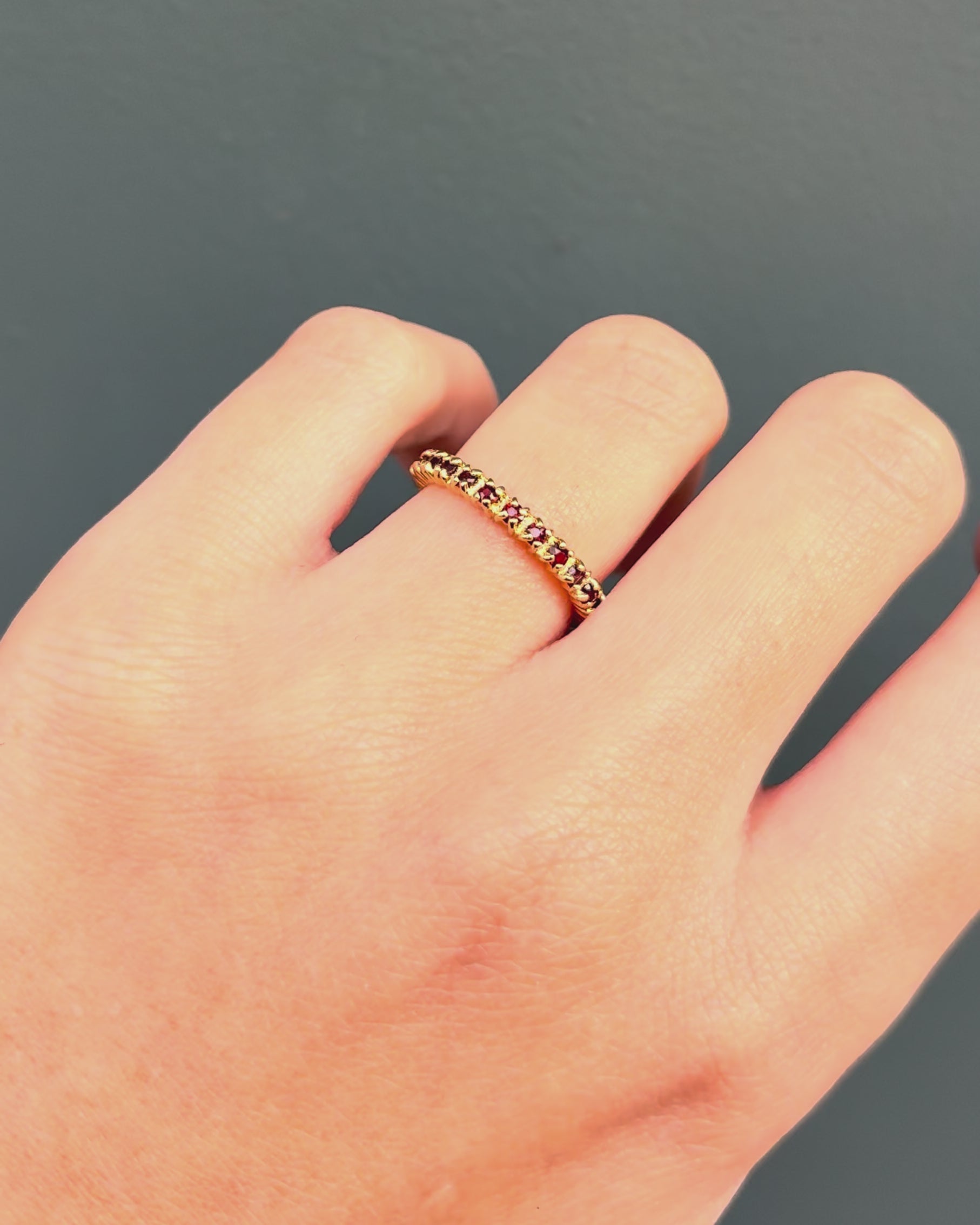 Bague unique taille 48.5, la mise à taille n'est pas possible en raison du sublime pavage de grenats.