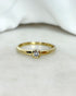 "Valentine" est une élégante bague jonc vintage, façonnée en or jaune 9 carats. En son cœur trône un lumineux diamant de 0.03 carat, serti clos. Allié à l'or jaune, le serti clos révèle la beauté naturelle du diamant et lui confère un éclat magique. Cette bague ancienne est à la fois intemporelle et résolument raffinée.
