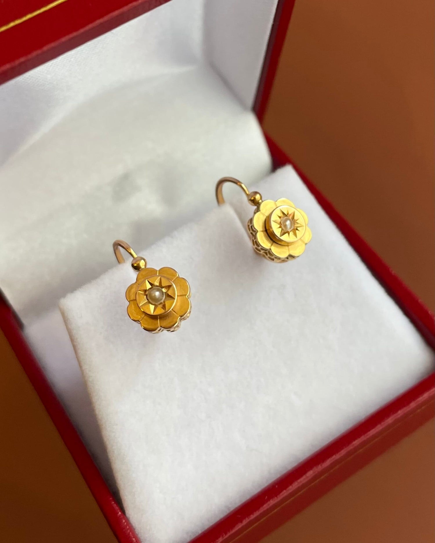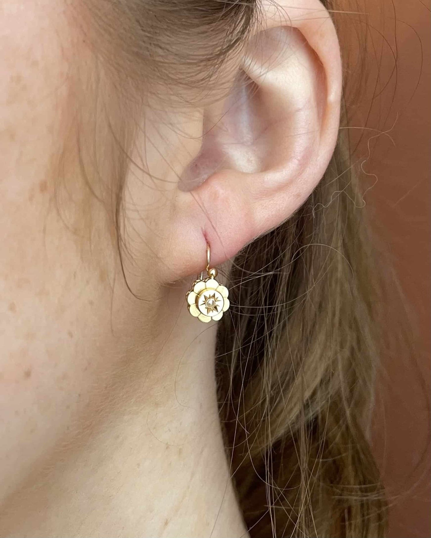 Dormeuses Perles Fleurs XIXème siècle "Dora" - Elliade Paris
