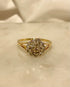 Son anneau en or jaune 18 carats travaillé main est délicatement ajouré.