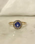 "Leila" est une bague marguerite vintage des années 1970, délicatement façonnée en or jaune et gris 9 carats. En son centre, une éblouissante tanzanite d’un violet-bleuté profond de 0.87 carat capte la lumière avec élégance, sublimée par un entourage raffiné de 26 diamants baguette scintillants totalisant 0.26 carat. La taille baguette est extrêmement complexe à réaliser et particulière onéreuse. Ici le calibrage des diamants produit un halo de lumière sensationnel sur la bague "Leila".