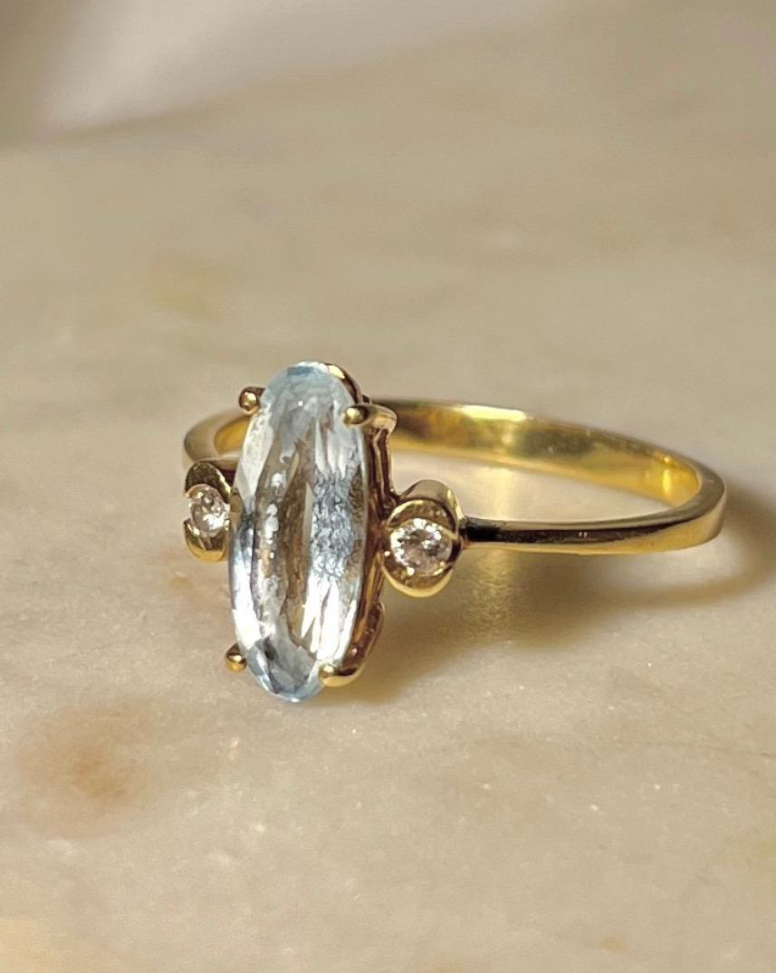 Bague trilogie Aigue - marine & diamants "Albane" - Elliade Paris
