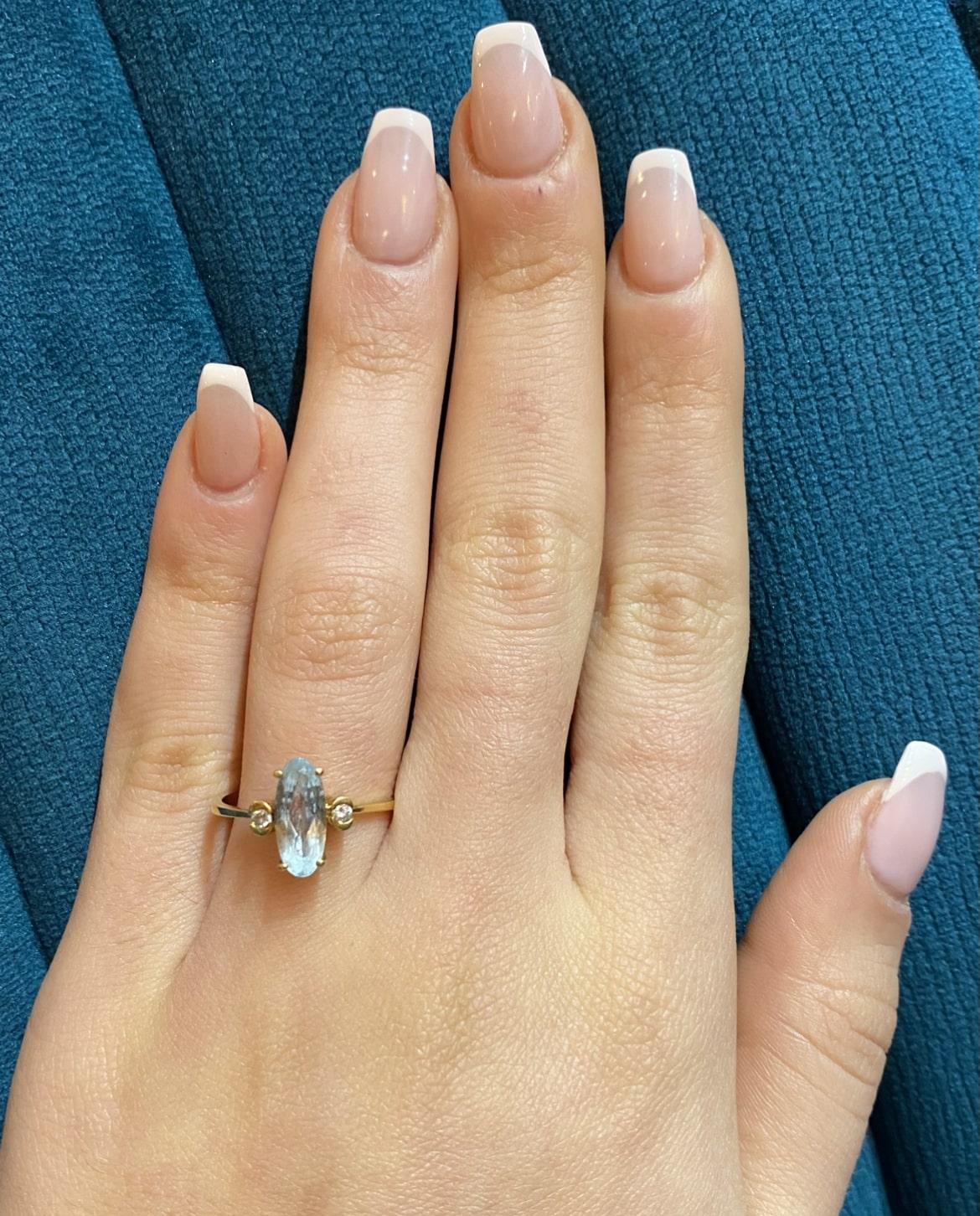Son anneau délicat en or jaune retient une sublime Aigue-marine lumineuse.