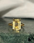 Son anneau soigneusement ajouré retient un solitaire citrine éblouissant de trois carats.