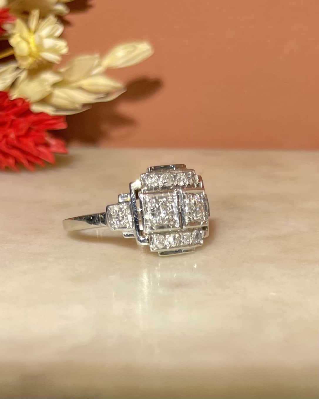 “Tatum » est une sublime bague Art Déco vintage des années 1930, qui incarne l’essence du style Art Déco, avec son design géométrique, élégant et intemporel.