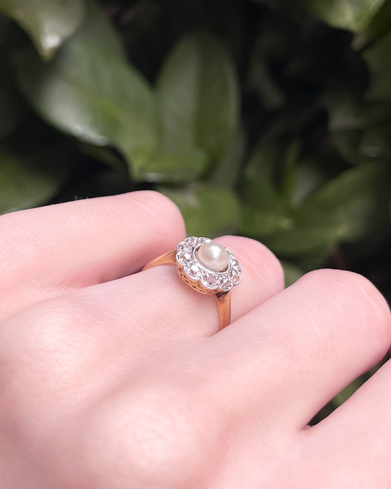 Bague Art-Déco Perle & 10 Diamant "Magnolia"