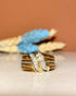 Bague unique dont l’anneau est façonné en or jaune et gris 18 carats, apportant une touche de chaleur et mettant en avant les pierres.