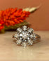 « Maya », une magnifique bague marguerite authentique des années 1950, façonnée avec une précision exquise en or gris 18 carats. Sublime travail français.