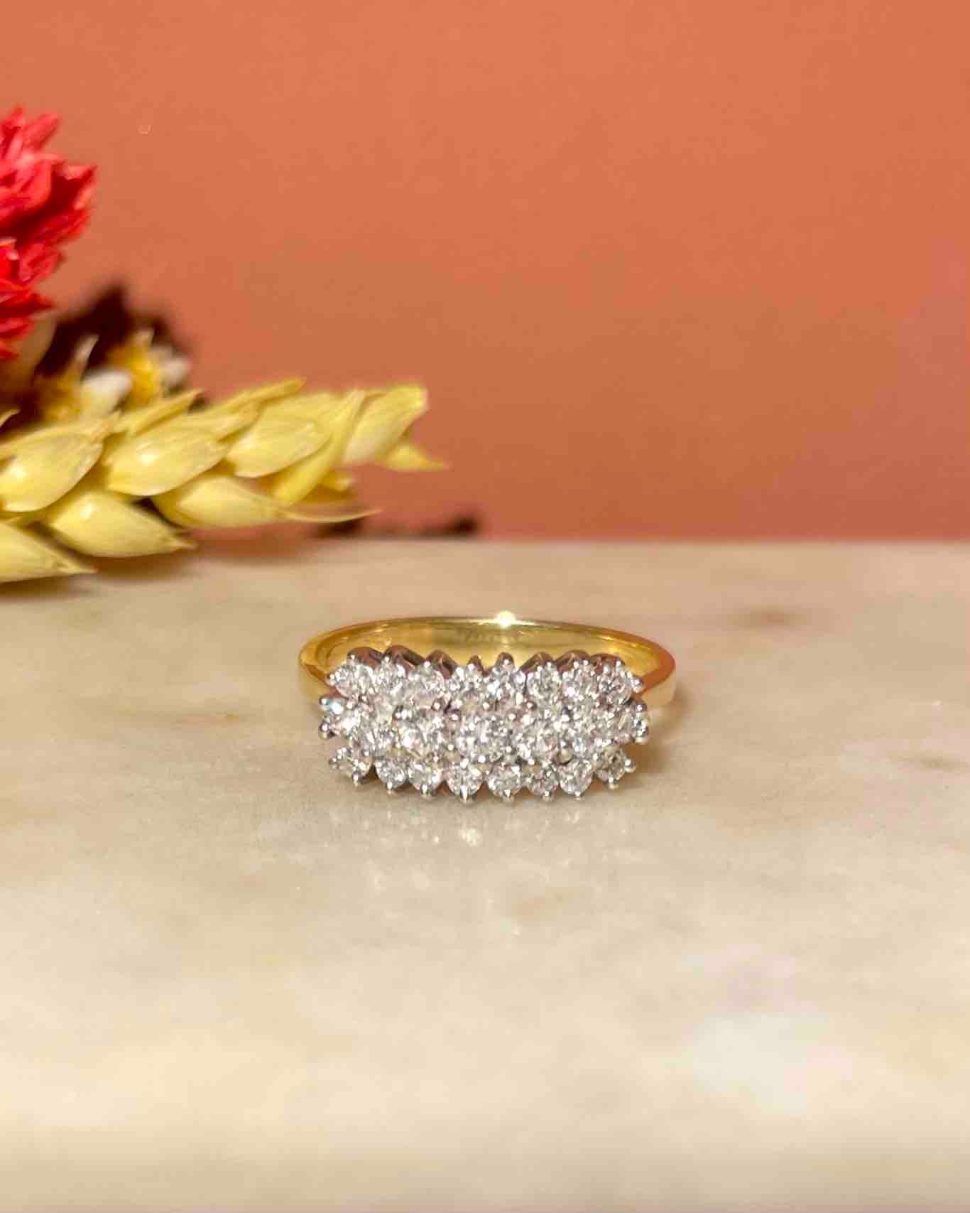 “Stelly » est une éblouissante bague rivière vintage d’exception des années 1970.