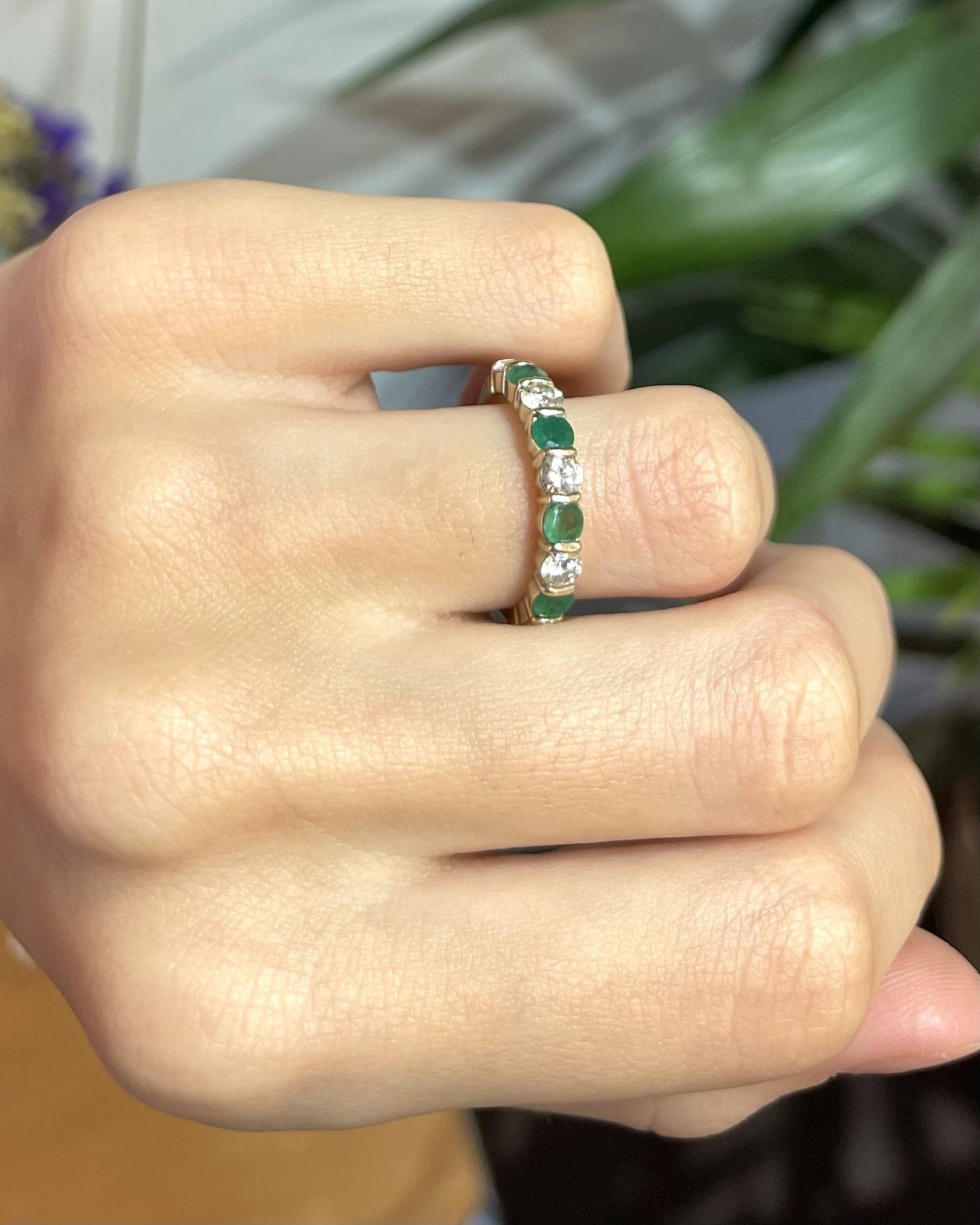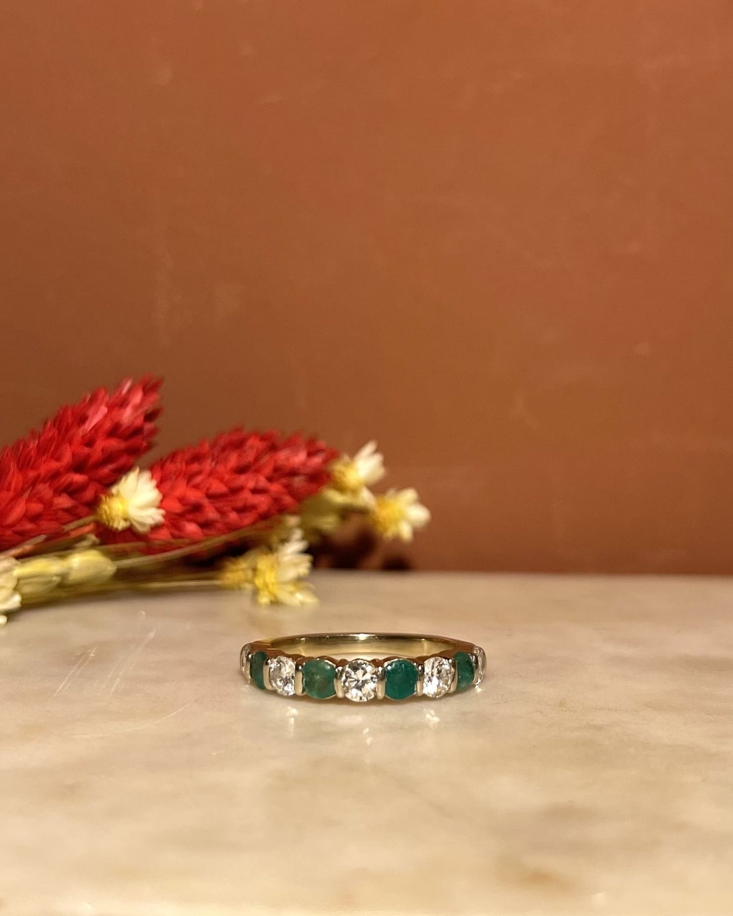 Bague Rivière 4 Emeraudes & 5 Diamants "Julianne"
