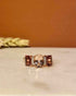 Elle est sertie d’une merveilleuse morganite centrale de 1.06 carat, entourée de deux sublimes grenats de 1.40 carat au total et completée par dix diamants scintillants totalisant 0.05 carat.