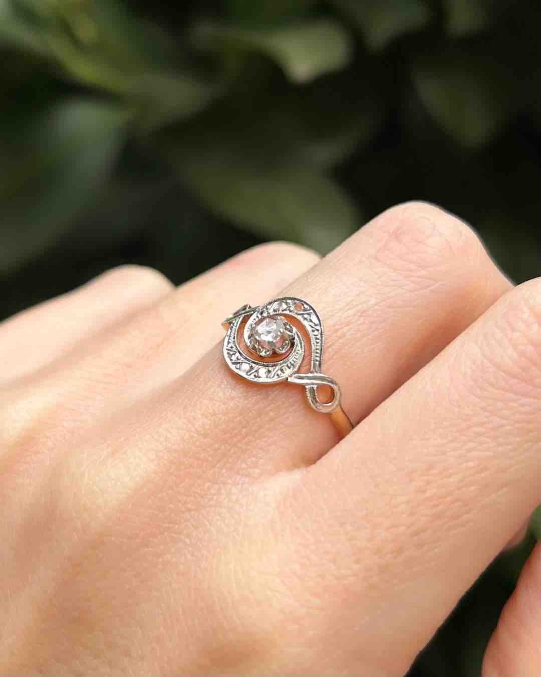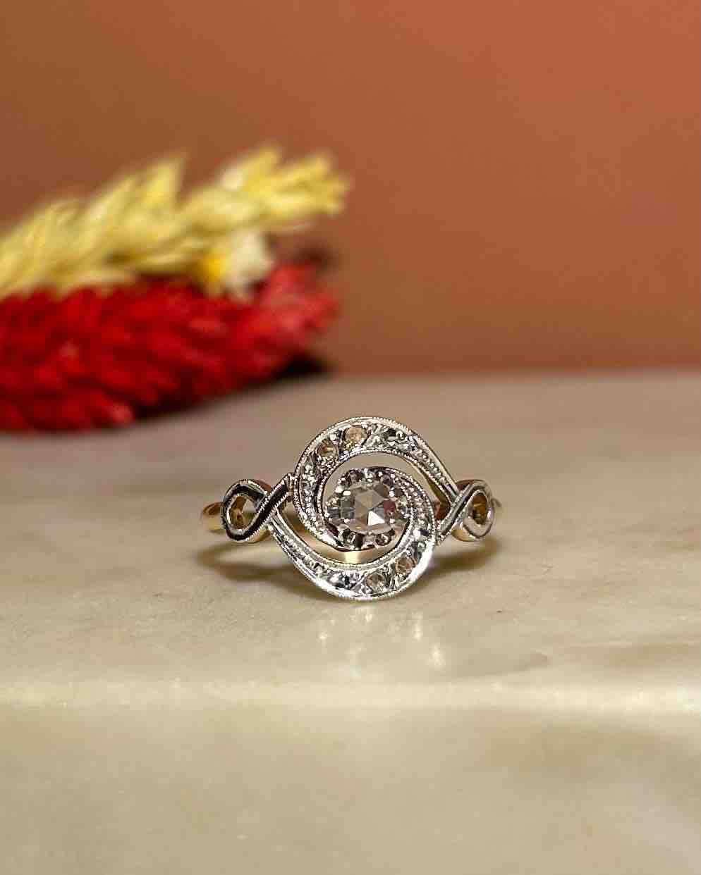 « Dalina » est une superbe bague vintage tourbillon diamants.