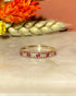 Elle est délicatement habillée de cinq rubis rouge étincelants de 0.10 carat au total ainsi que de quatre diamants scintillants de 0.04 carat au total.