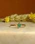 Sertie d’une émeraude marquise d’un vert magnétique, son anneau fin lumineux or jaune délicatement travaillé souligne la beauté de cette pierre.