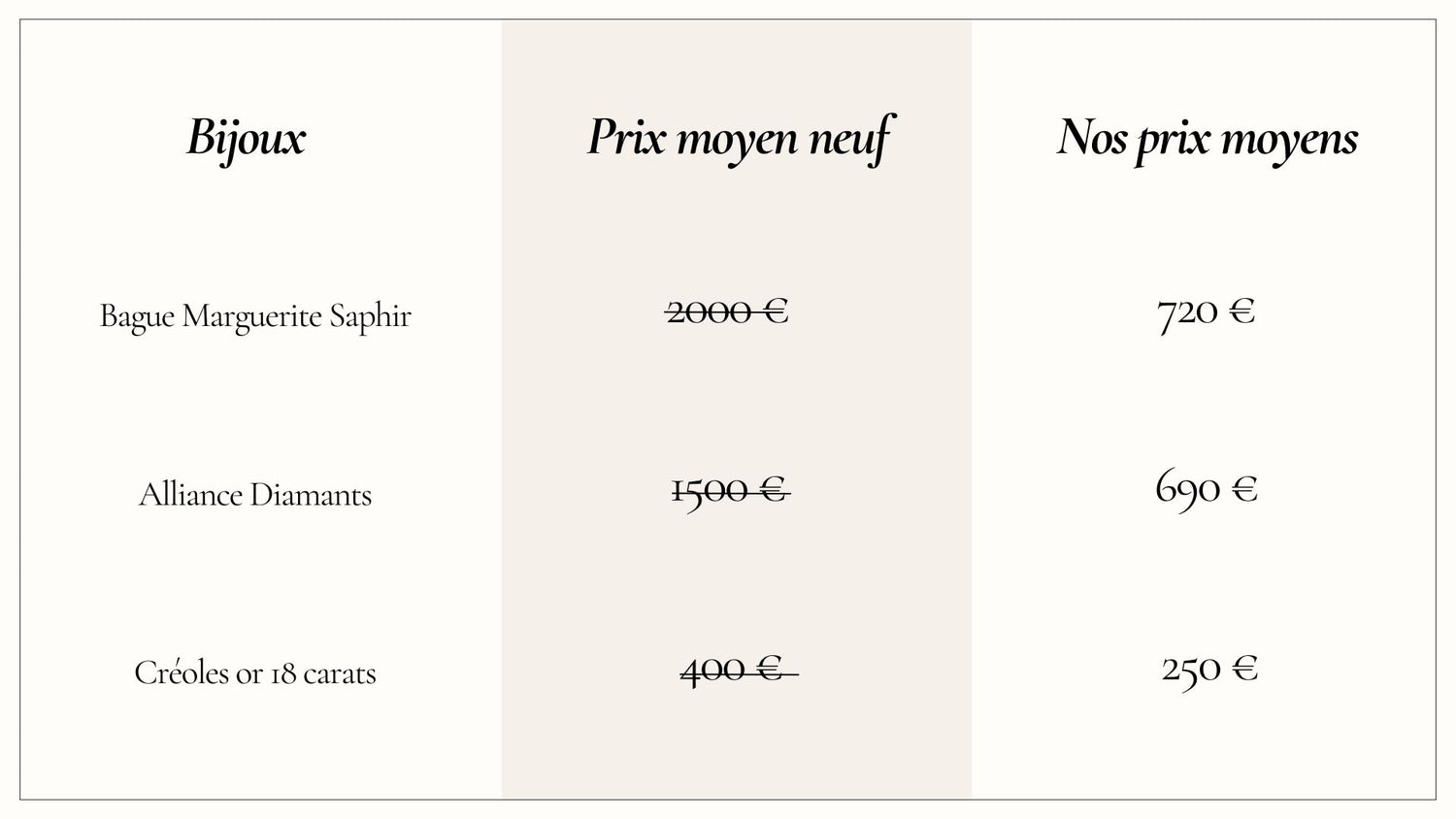 La mission d'Elliade est de démocratiser la joaillerie, en rendant le bijou vintage accessible. Nous avons pris la décision de réduire au maximum nos marges pour proposer des prix en moyenne 3x moins chers que le neuf à qualité équivalente. Nous avons misé sur la fidélité de nos clients et la récurrence de leurs achats, plutôt que sur des prix prohibitifs.