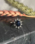 Elle est habillé d’un somptueux saphir bleu profond, dans un entourage de pétales de dix diamants étincelants.