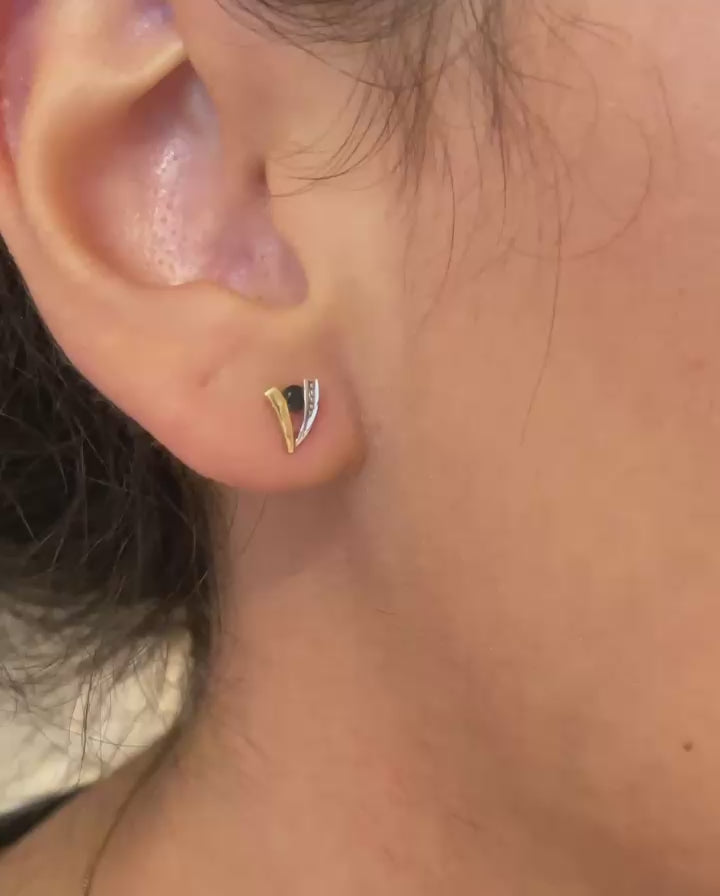 Les boucles d’oreilles sont conçues en or jaune et gris 18 carats, ajoutant une touche de raffinement.