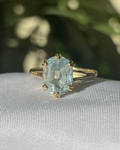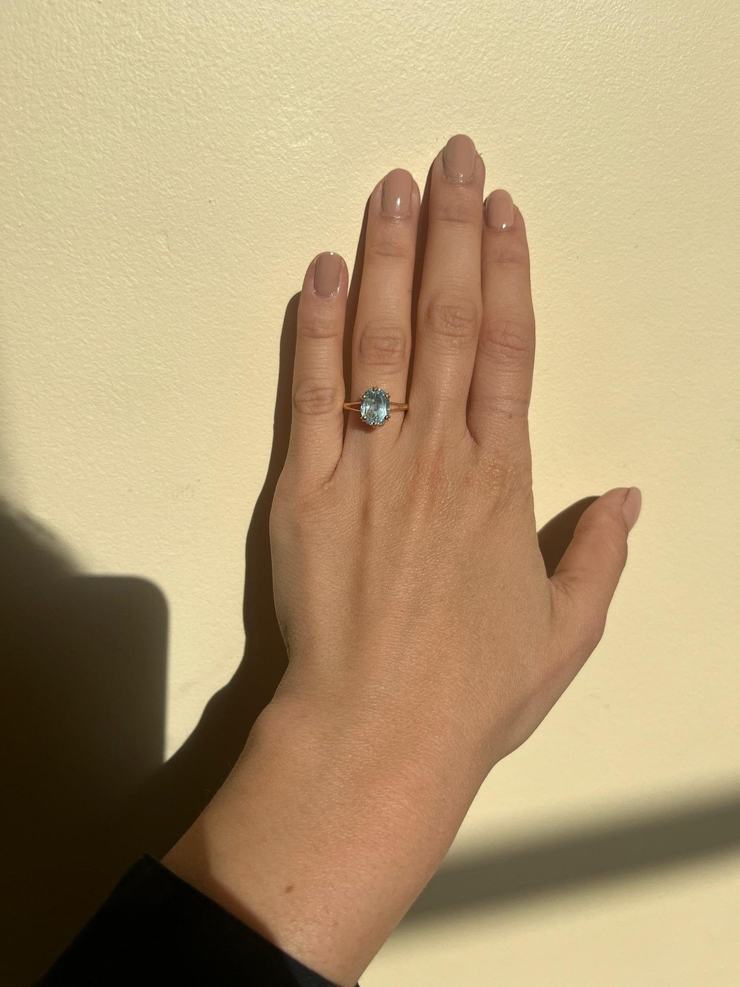 Une inspiration lumineuse « Elicia » est une bague vintage éclatante, ornée d’un topaze ovale de 2 carats.