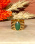 Cette sublime bague jonc est façonnée en or jaune 18 carats. Son anneau dévoile un cachet tout particulier grâce à ses détails en relief.