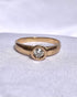 « Coralie » est centrée d’un diamant, dont l’éclat est rehaussé par la forme bombée du jonc.