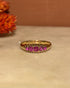Elle est façonné en or cuivré 18 carats et ornée d’une rivière de cinq rubis rose étincelants pour un total d’environ 0.25 carat.