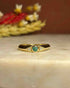 Son anneau or jaune est serti de deux diamants retenants une émeraude lumineuse.