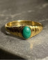 Sertie d’une malachite d’un vert magnétique, le travail raffiné et élégant de son jonc en or jaune 18 carats et en forme cabochon nous envoute.