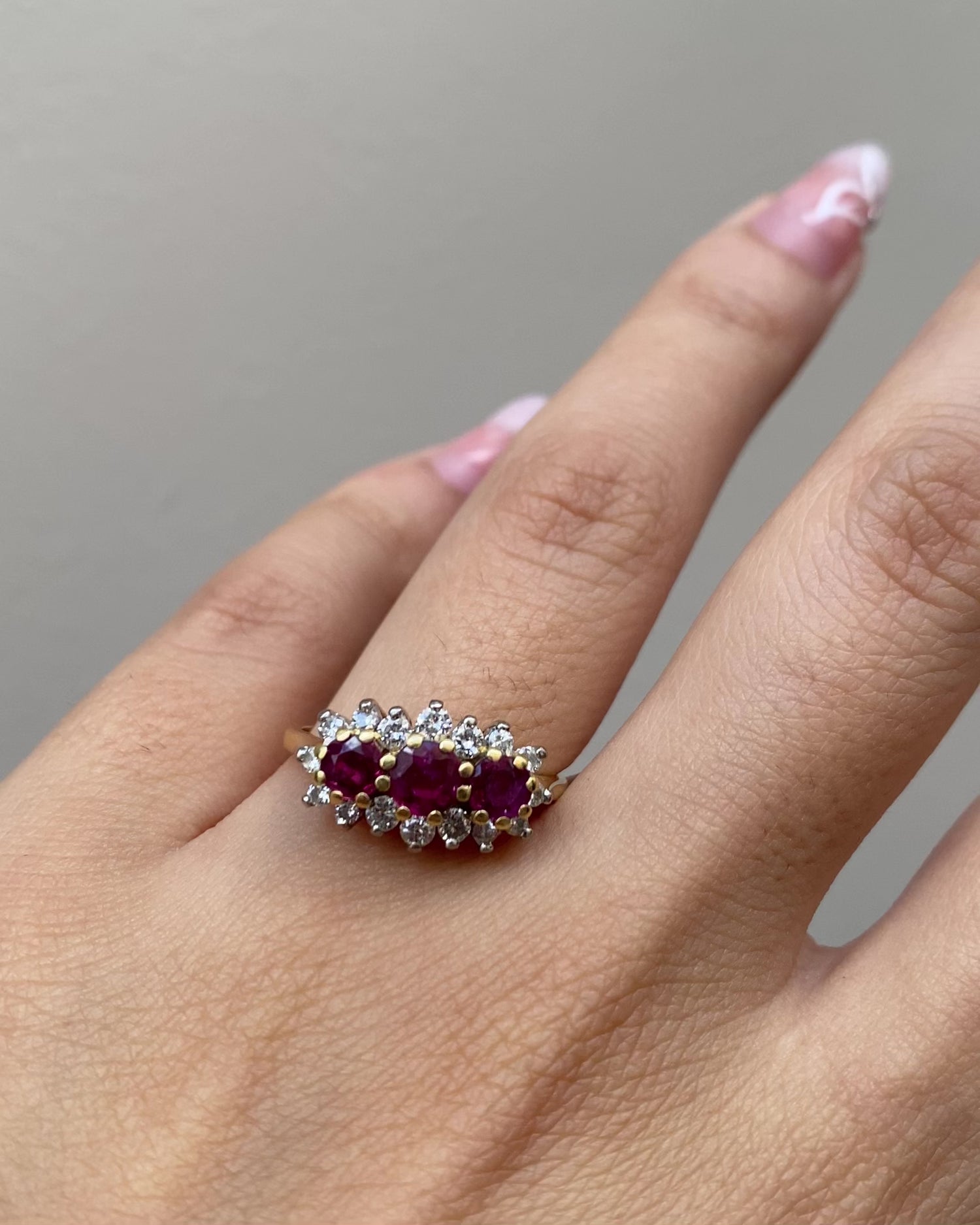 Bague Trilogie Rubis 0.85 carat & 16 Diamants "Samira"