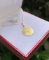 Le pendentif "Isméra" est une pièce ancienne façonnée en or jaune 18 carats, arborant un délicat motif gravé du signe astrologique Balance, symbole d'équilibre, de justice et d’harmonie.
