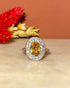 Elle est sertie d’une citrine de 1 carat madère d’une couleur miel. Elle est encadré par dix diamants brillant.