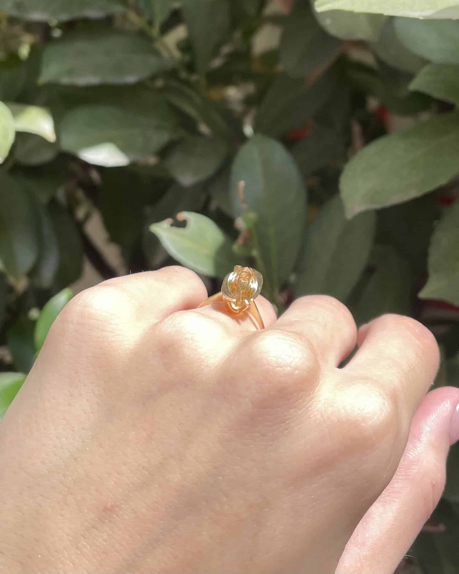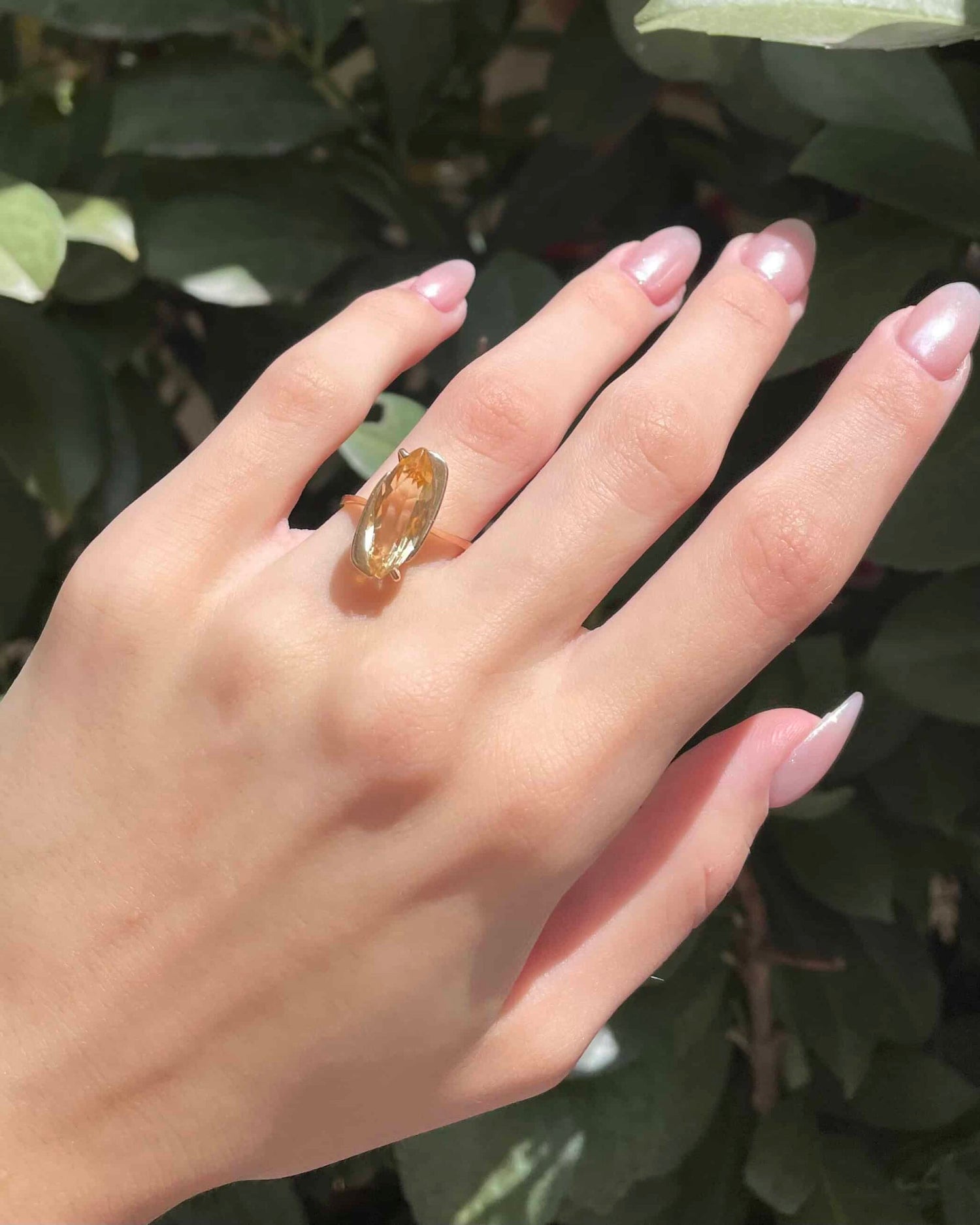 Elle met en lumière une majestueuse citrine couleur miel éblouissante de 2.70 carats, enveloppé par une couche d’or.