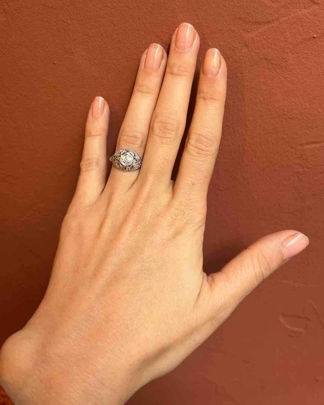 Les années 1930 étaient marquées par un sens aigu de l’esthétique, et cette bague en est un exemple parfait, alliant tradition et modernité.