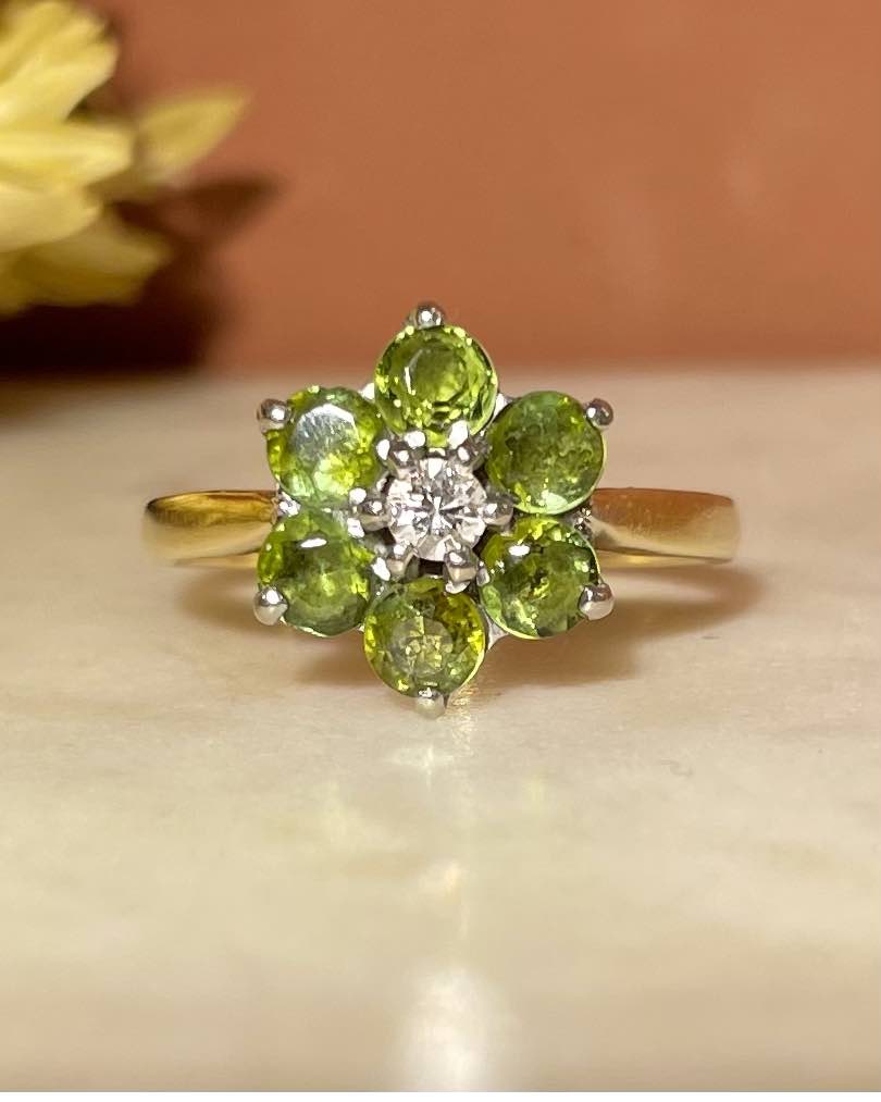 Bague Marguerite Péridot coeur Diamant "Savanah"