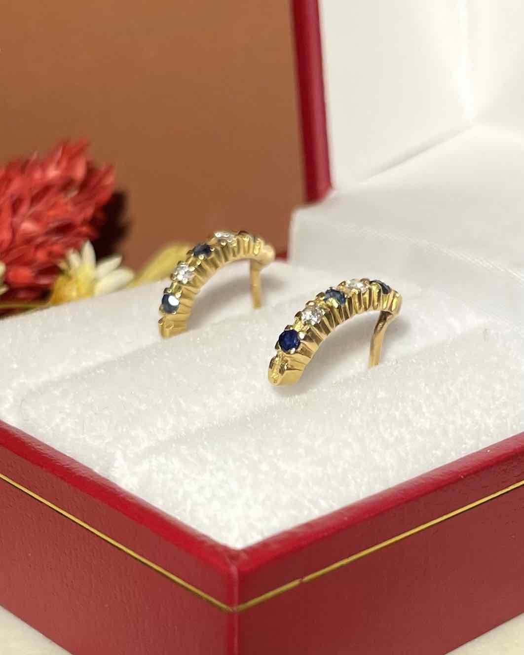 Chaque boucle est sertie d’une alternance de trois saphirs bleus et deux diamants en rivière.