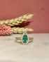 Au centre trône une merveilleuse émeraude à la couleur hypnotisante de 0.68 carat taillée en poire.