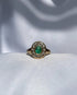 Elle possède en son centre une émeraude ovale lumineuse, rehaussée d’un entourage de douze diamants en serti rail.