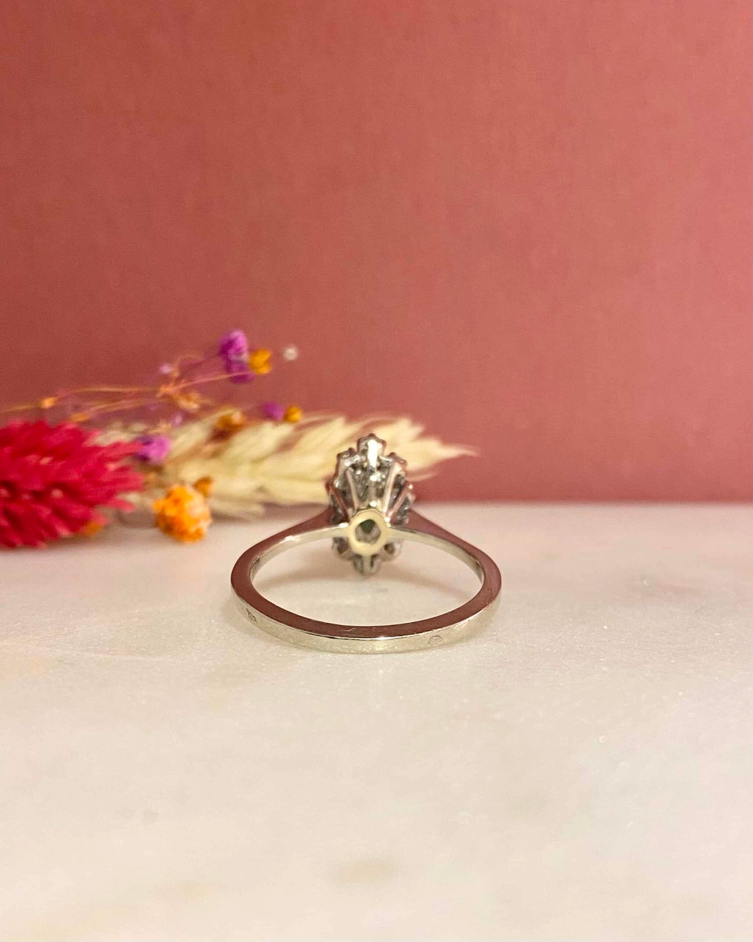 “Armelle” est une sublime bague marguerite style marquise des années 1970.