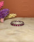 Son anneau finement travaillé est serti de vingt rubis, d’une jolie couleur framboise, pour un total d’un carat.