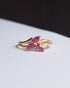 La Camélia est une sublime bague vintage en or jaune 18 carats ornée de pétales rubis entourés de diamants.