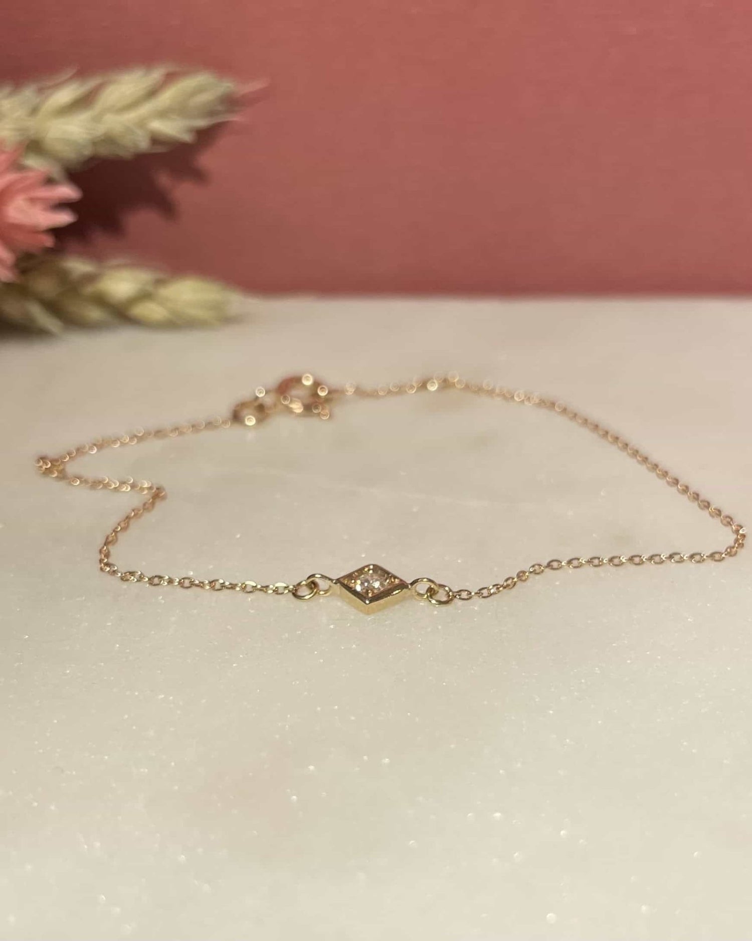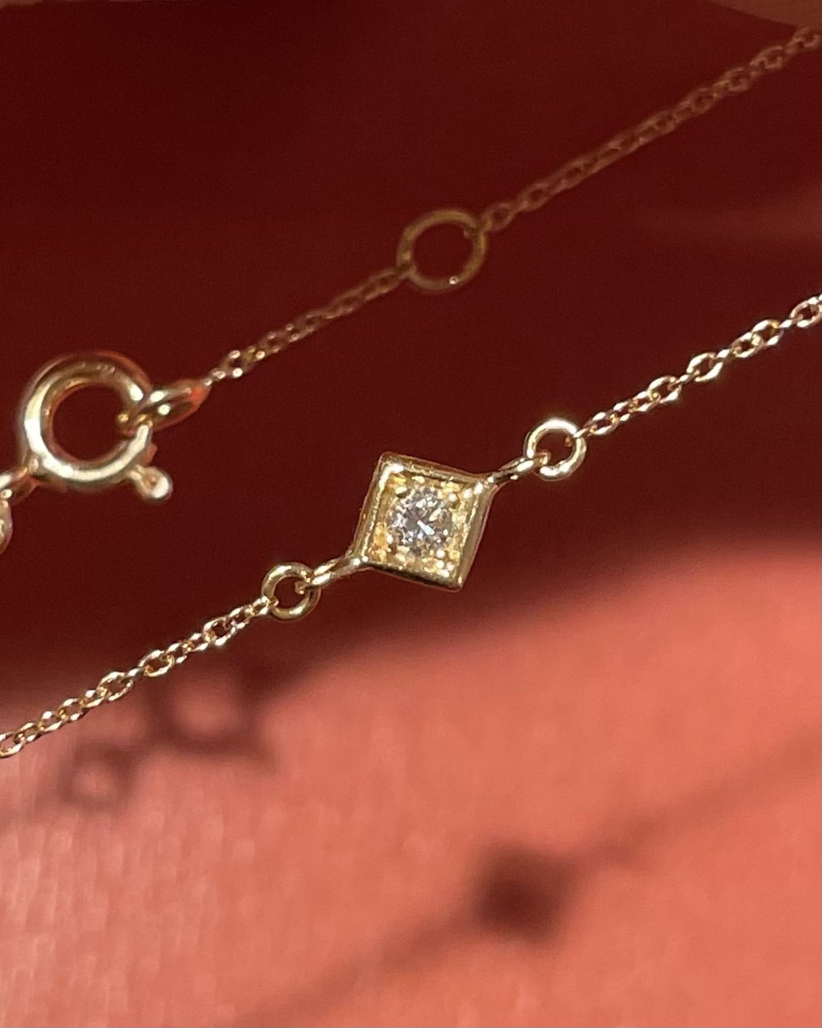 Sa maille souple et fine est sertie d’un lumineus diamant de 0.06 carat.