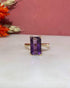 “Amely” est une sublime bague cocktail vintage et unique habillée d’une magnifique améthyste lumineuse de 3.30 carats. Son anneau délicatement travaillé est façonné en or jaune 18 carats.