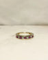 Elle est délicatement habillée de cinq rubis rouge étincelants de 0.20 carat au total ainsi que de quatre diamants brillants de 0.12 carat au total en serti rail.
