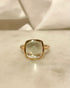 "Carmelia" est une bague solitaire vintage au charme unique, façonnée en or jaune cuivré 18 carats. Inspirée du style Pomellato, elle met en lumière un superbe cabochon d’aigue-marine, dont les reflets cristallins évoquent la mer et la douceur.