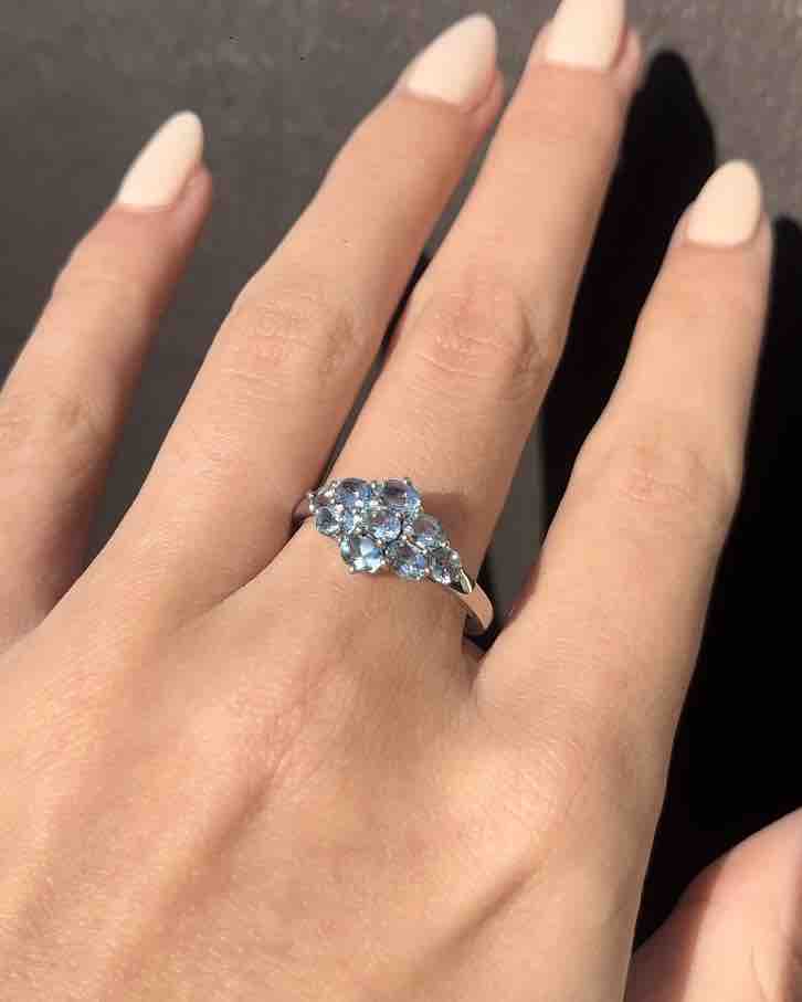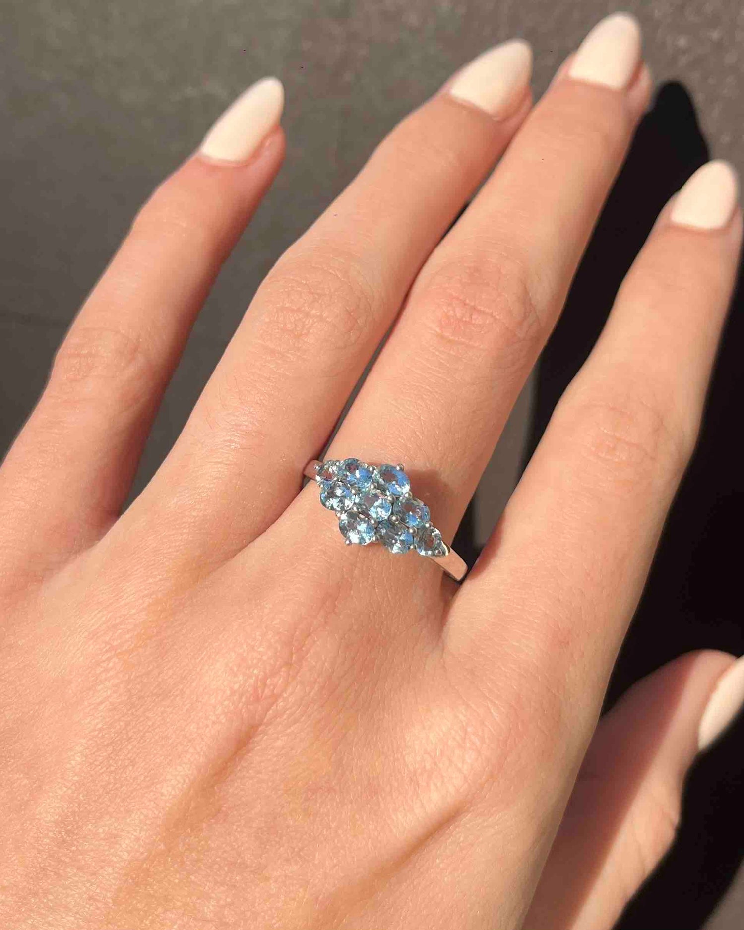 « Caliopé » est une bague rivière aigue-marine unique et éclatante.